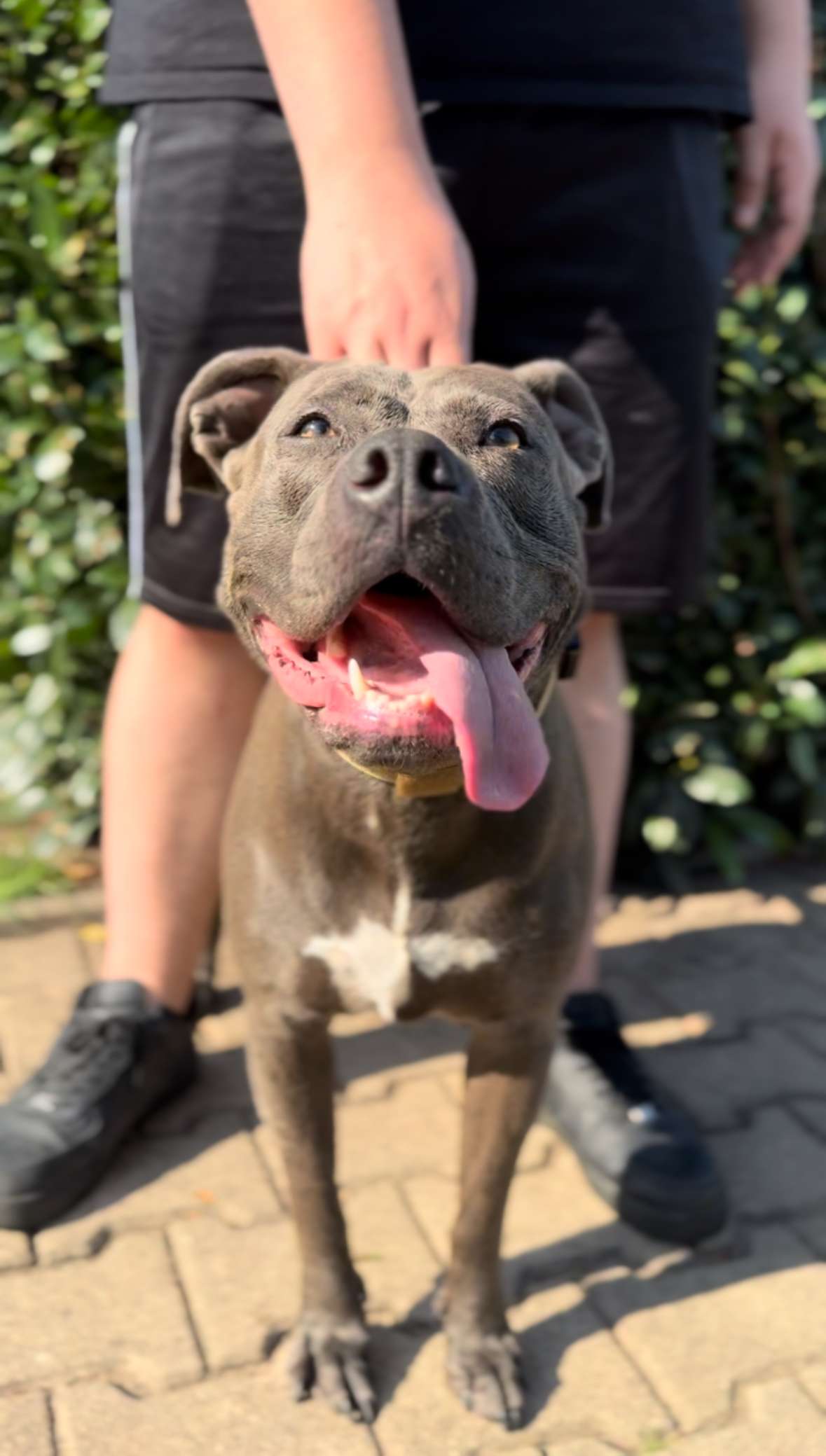 Gr. XL für unseren Bully XL (8 Monate) ist schon knapp und wird wahrscheinlich nicht so lange passen, aber es ist sehr schick und wirkt robust.